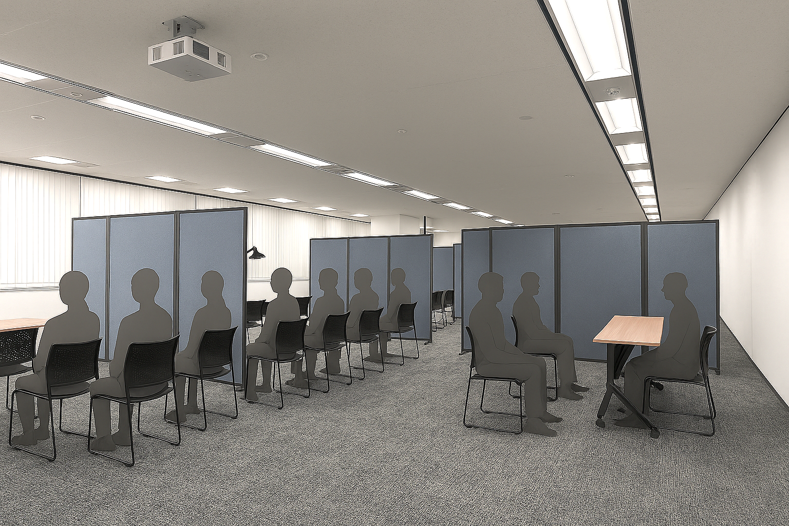 パーテーションで区切り、