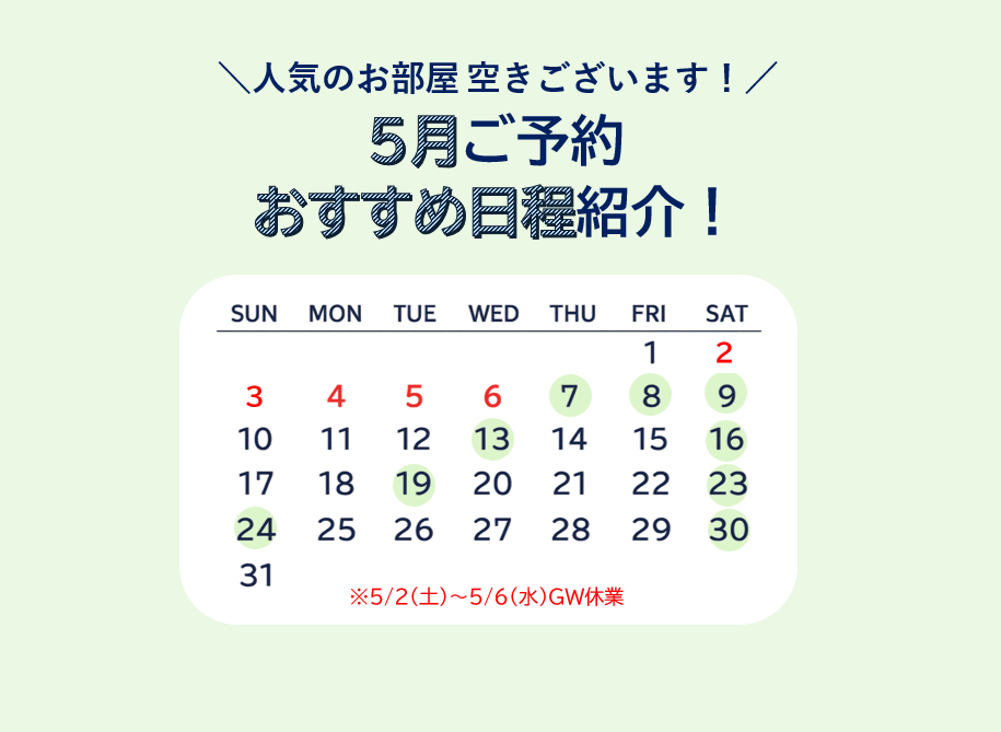 各種空きがございますのでお気軽にお問い合わせください♪