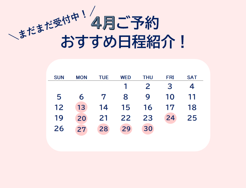 4/13(月)・4/20(月)・4/24(金)・4/27(月)~4/30(木)